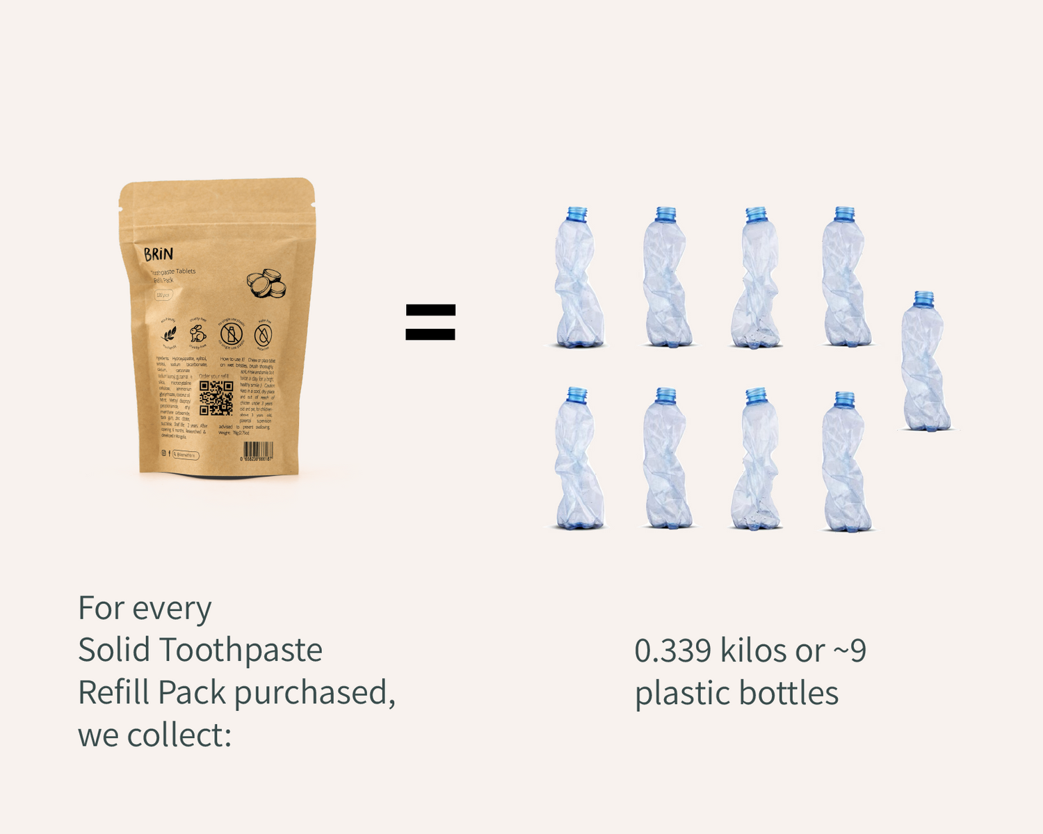 We dedicate 3% of each sale to ocean clean-ups in India. This removes 0.270 kilos of plastic from the ocean. In other words, for every solid toothpaste jar purchase, we commit to clean approximately 9 bottles from the ocean.