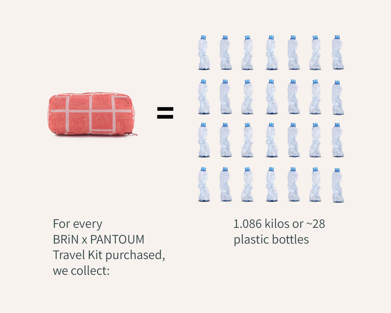 We dedicate 3% of each sale to ocean clean-ups in India. This removes 1.086 kilos of plastic from the ocean. In other words, for every BRiN x Pantoum Travel Kit purchase, we commit to clean approximately 28 bottles from the ocean.