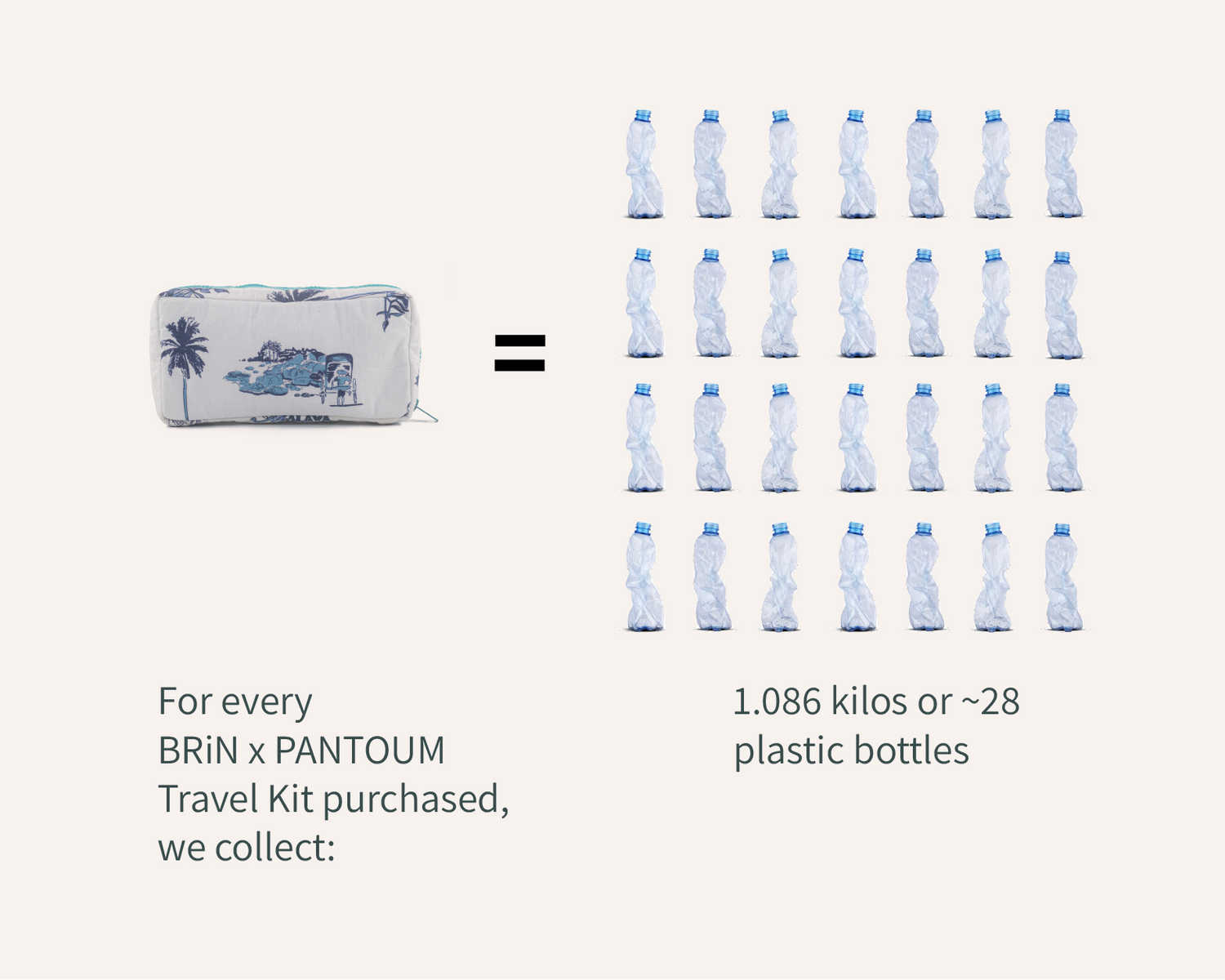 We dedicate 3% of each sale to ocean clean-ups in India. This removes 1.086 kilos of plastic from the ocean. In other words, for every BRiN x Pantoum Travel Kit purchase, we commit to clean approximately 28 bottles from the ocean.